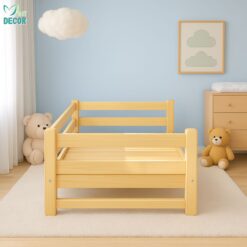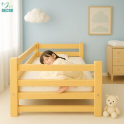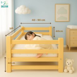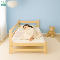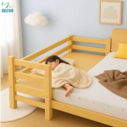 Giường ghép gỗ thông dài 2m có thanh chặn ngang là lựa chọn lý tưởng cho các gia đình muốn bé ngủ riêng nhưng vẫn nằm sát cạnh bố mẹ. Thiết kế tiện lợi, chất liệu an toàn và khả năng tháo lắp nhanh giúp bố mẹ dễ chăm sóc bé hơn, đồng thời hỗ trợ con tự lập trong giấc ngủ từ sớm.